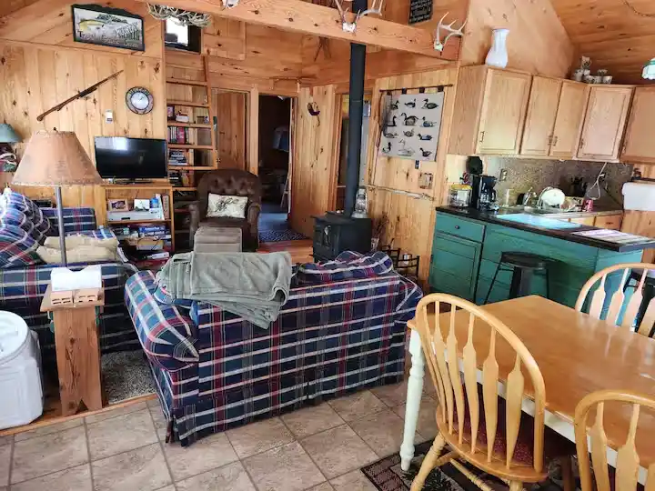 Bluegill Cabin is the quintessential northern Wisconsin cabin; cozy, private, with lots of rustic charm. Situated on nearly 2 acres of land and over 100 feet of lake frontage, there is something for every outdoor enthusiast! The lake is 26 acres of spring-fed clear water; perfect for fishing, swimming, kayaking, floating, or watching the loons, turtles, and otters. This is a no-wake lake and motorized watercraft are prohibited, keeping our water and shoreline clean and pristine!
